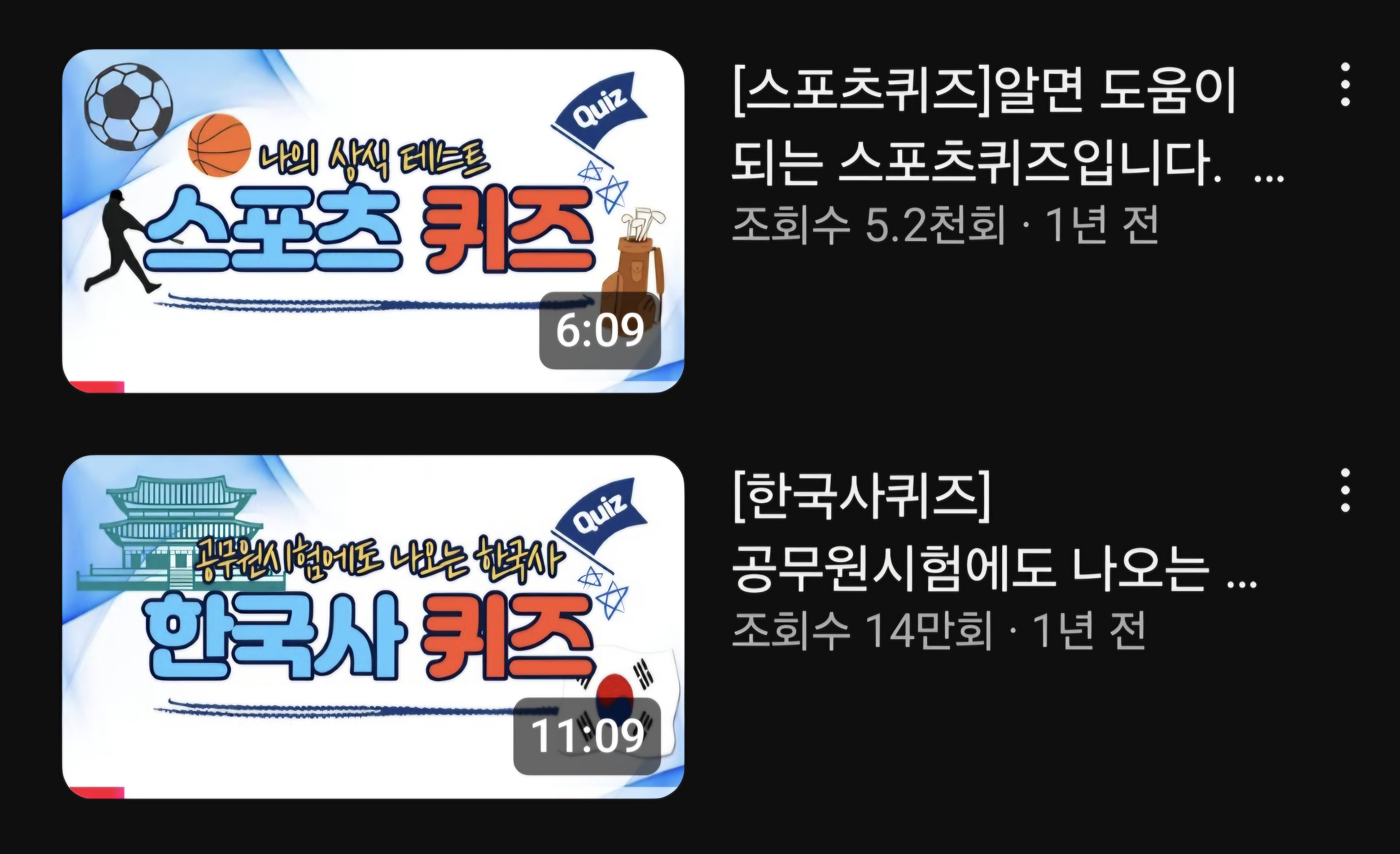 현재 내 유튜브 채널에는 구독자 1,180명. 가장 조회 수가 높은 영상은 '한국사 퀴즈'로 14만 회를 기록하고 있다. 1년 넘게 활동을 멈췄다.